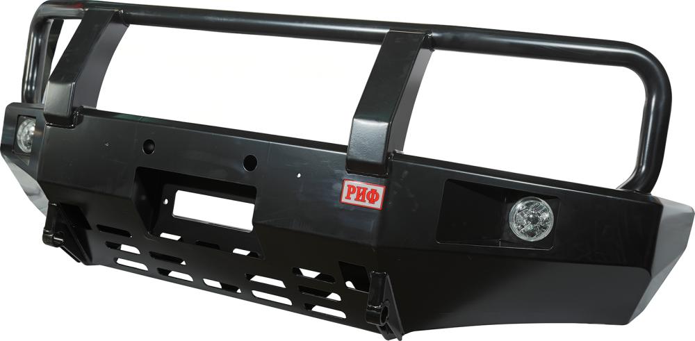 Передний силовой бампер с защитной дугой РИФ служит для защиты автомобиля на бездорожье и в городе. В случае контакта или легкого столкновения с препятствием в виде камней, бревен, пней, колей или незадачливых водителей, риск получить серьезные повреждения машины существенно уменьшается, а это очень важно в экспедициях и в повседневной жизни. Бампер с кенгурятником не только защитит, но и украсит внедорожник благодаря эффектному и элегантному дизайну.