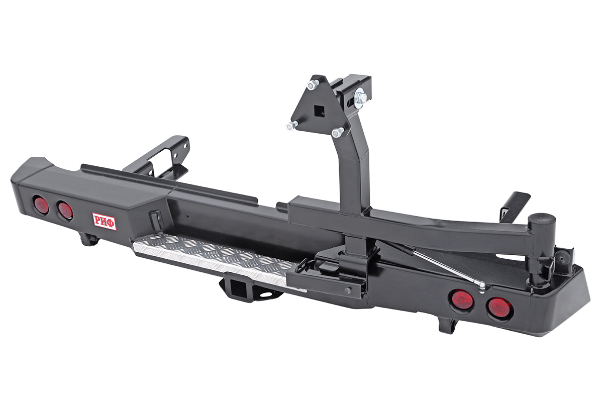 Задний силовой бампер РИФ надежно защитит кузов автомобиля на бездорожье или в городе в случае непредвиденных инцидентов. Бампер оборудован упорами под хай джек и буксирными проушинами для работы с рывковой или буксировочной стропой.