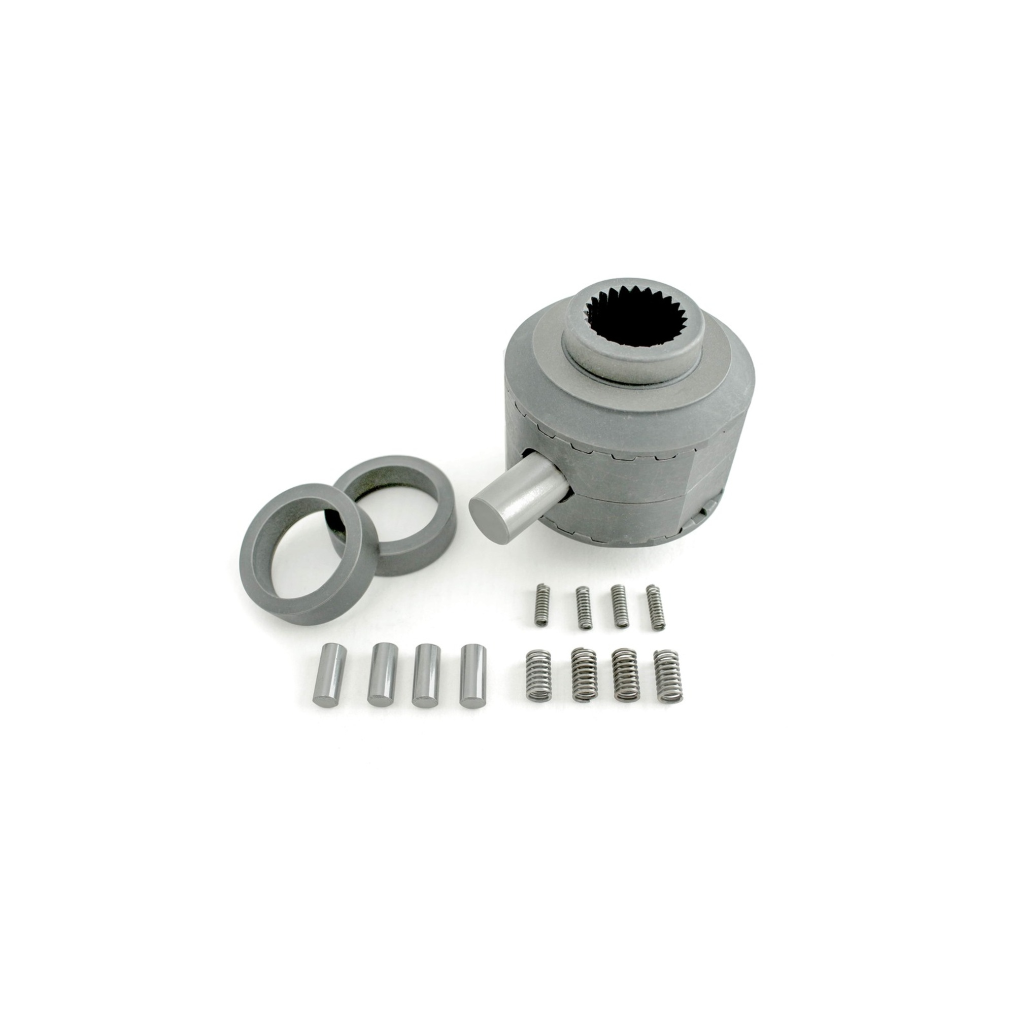 Конструкция блокировки достаточно проста и, как следствие, предельно надежна. Блокировка состоит из пары полуосевых и пары распорных муфт, пружинок, штифтов и шайб.