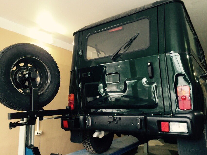 Штатное расположение запасного колеса на двери багажника доставляет владельцам УАЗ Хантер немало хлопот. Даже от веса штатного колеса, спустя какое-то время, начинает провисать «пятая» дверь и перекашиваться при захлопывании. В случае если запасное колесо увеличенного размера, соответствующее основному комплекту колес внедорожника, то процесс этот происходит еще быстрее. Усиливать родные петли практически бесполезно, поэтому единственным вариантом решения данной проблемы является установка калитки и перенос на неё запасного колеса со штатного места.