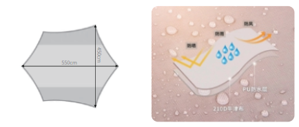 - Идеален для отдыха на открытом воздухе в летнее время, спасает от легкой непогоды и солнца