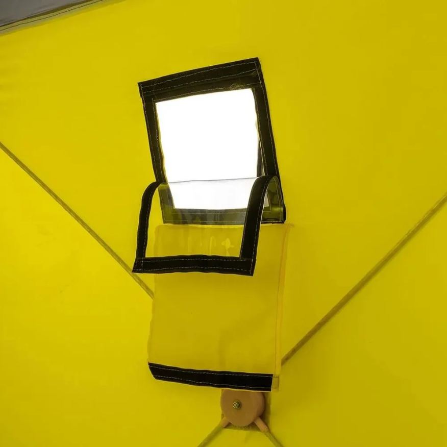 Для хорошего освещения внутреннего пространства имеется два окна из прозрачного морозоустойчивого материала и отстегивающиеся шторки из ткани тента.